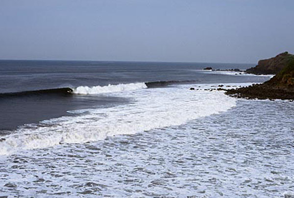 A hollow beachbreak in front of the town with one distinct peak, favoring lefts. Usually when it is this good the point is better, but check it anyway. Sometimes it is good when the point isn't and can work on a higher tide, offering a scrappier alternative.