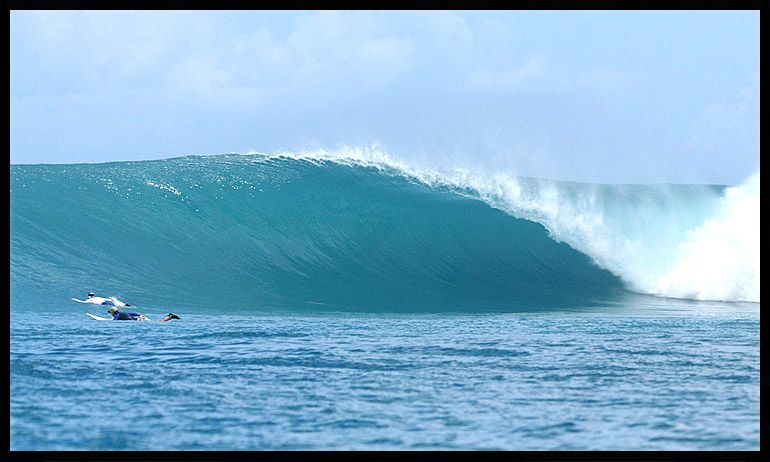 Kandui a.k.a Kanduis or Nokandui is one of the fastest, down the line, left-hand barrels in the world. Kandui is an obscenely hollow wave with your only option for survival being tucked inside its enormous, gaping jaws. Unless you’re comfortable pumping inside the barrel the best you can hope for is to find the right line, exert a little extra front foot pressure, and hold on. Most of the waves will simply outrace you; however, the thrill of charging through the longest barrel possible is more than worth the effort. If the conditions are right you’ll take your share of beatings; but, chances are you’ll kick out of the best barrel of your life as well.